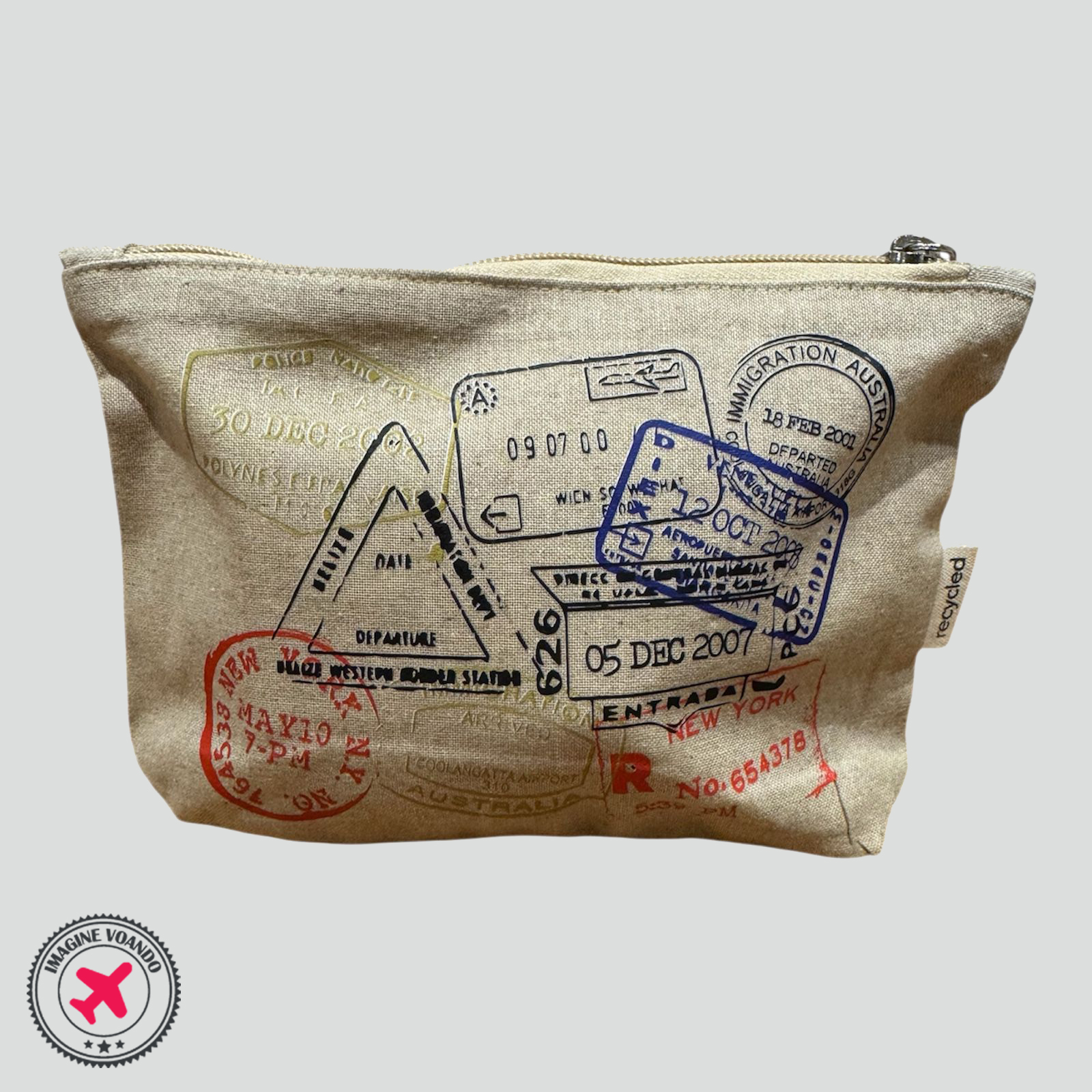 Bolsinha Necessaire com estampa STAMPS. Para levar na sua próxima viagem ou carregar na bolsa todos os dias. Ideal para produtos de higiene, maquiagem, cabos e carregador de celular ou qualquer outro item que desejar.